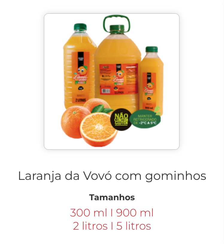 Presença de Suco de laranja integral, células de laranja, água, açúcar invertido, ácido cítrico (INS 330), pasteurizado, não fermentado, não alcóolico e conservante sorbato de potássio. (INS 202)